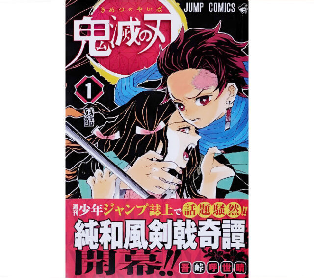吾峠呼世晴による代表作「鬼滅の刃」の単行本、第1巻の初版です。帯・ジャンパラ付き。